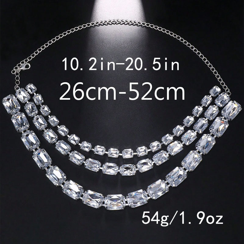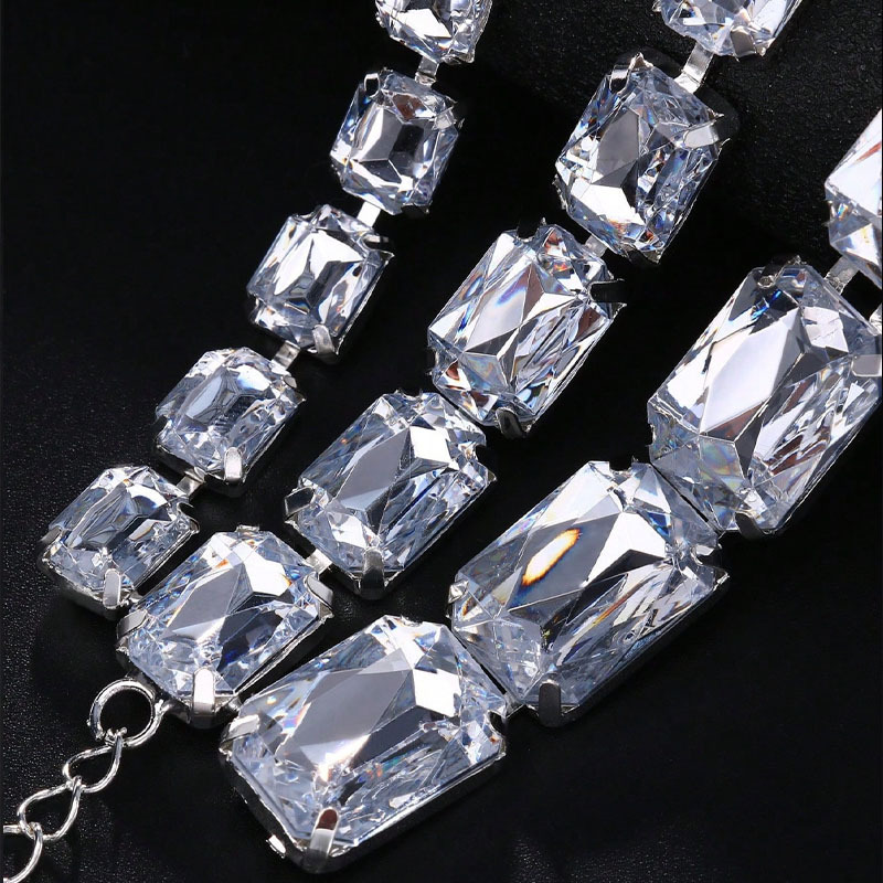 Multi-Layered Square Diamond Necklace, Personalized And Versatile European And American Style Exaggerated Full-Diamond Clavicle Chain Necklace